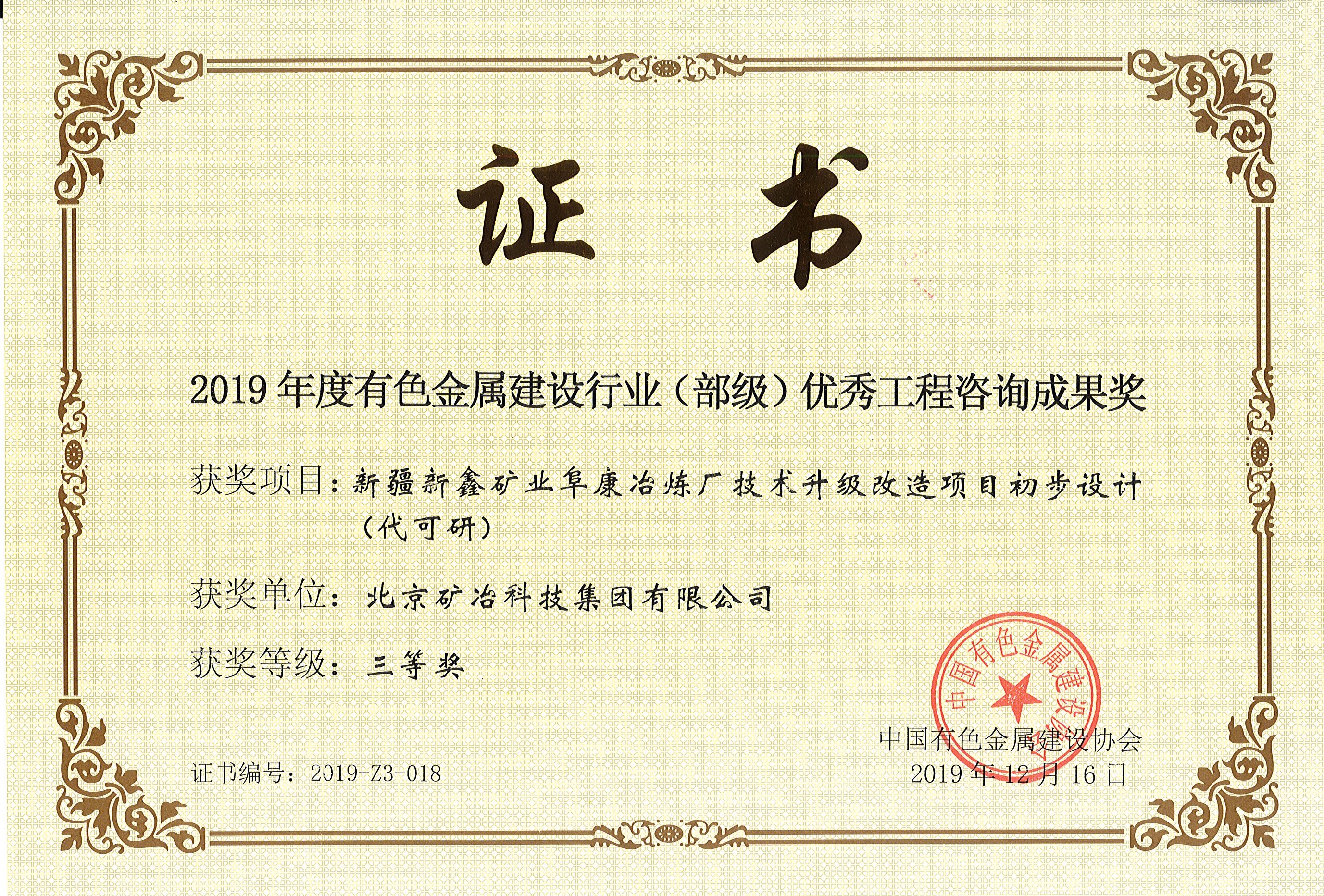 新疆新鑫矿业阜康冶炼厂技术升级改造项目初步设计(代可研) 三等