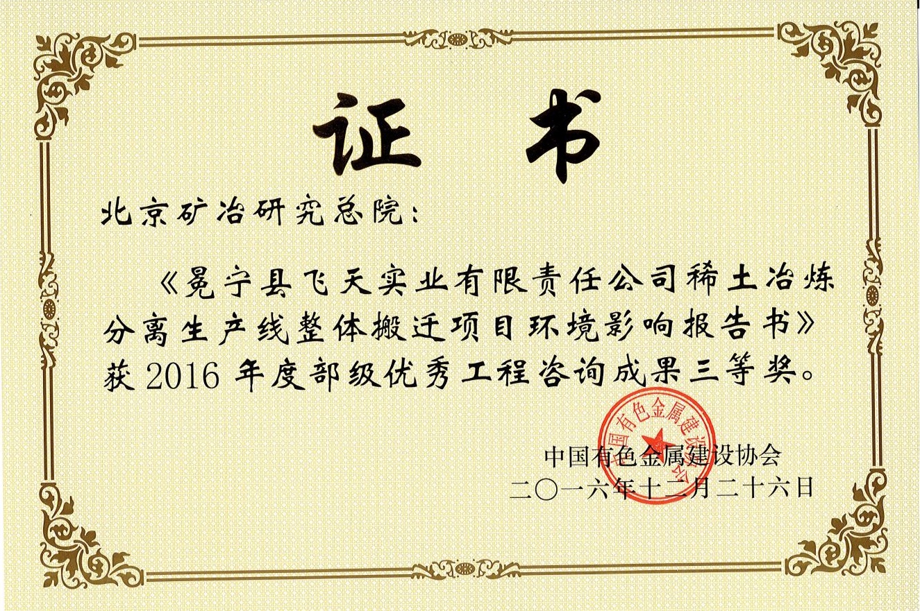 冕宁县飞天实业有限责任公司稀土冶炼分离生产线整体搬迁项目环境影响报告书