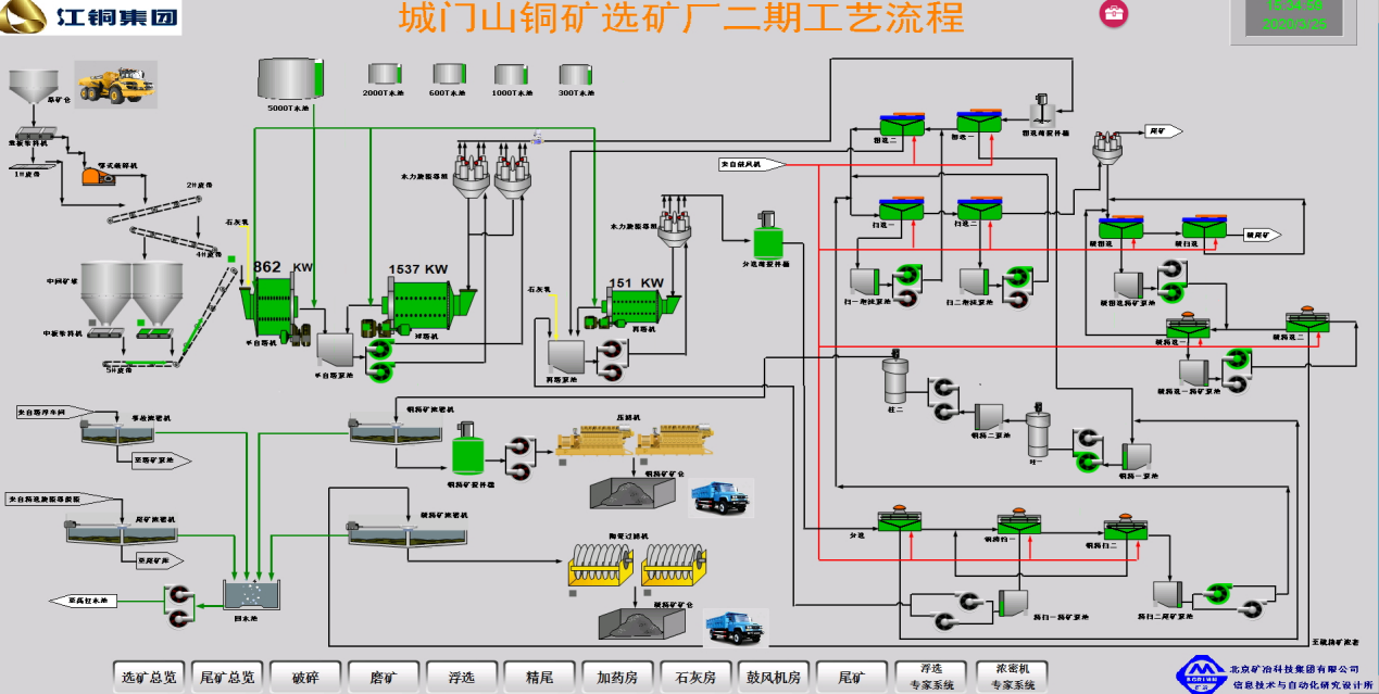 江铜集团城门山铜矿选矿智能化项目针对选矿生产的特点,以夯实基础自动化、推进控制智能化、探索生产决策自动化,建成“人力资源、设备资产、工艺技术”三位一体的选矿全流程指标优化系统,“精简岗位编制、提升生产指标、培养复合型人才”为目标。