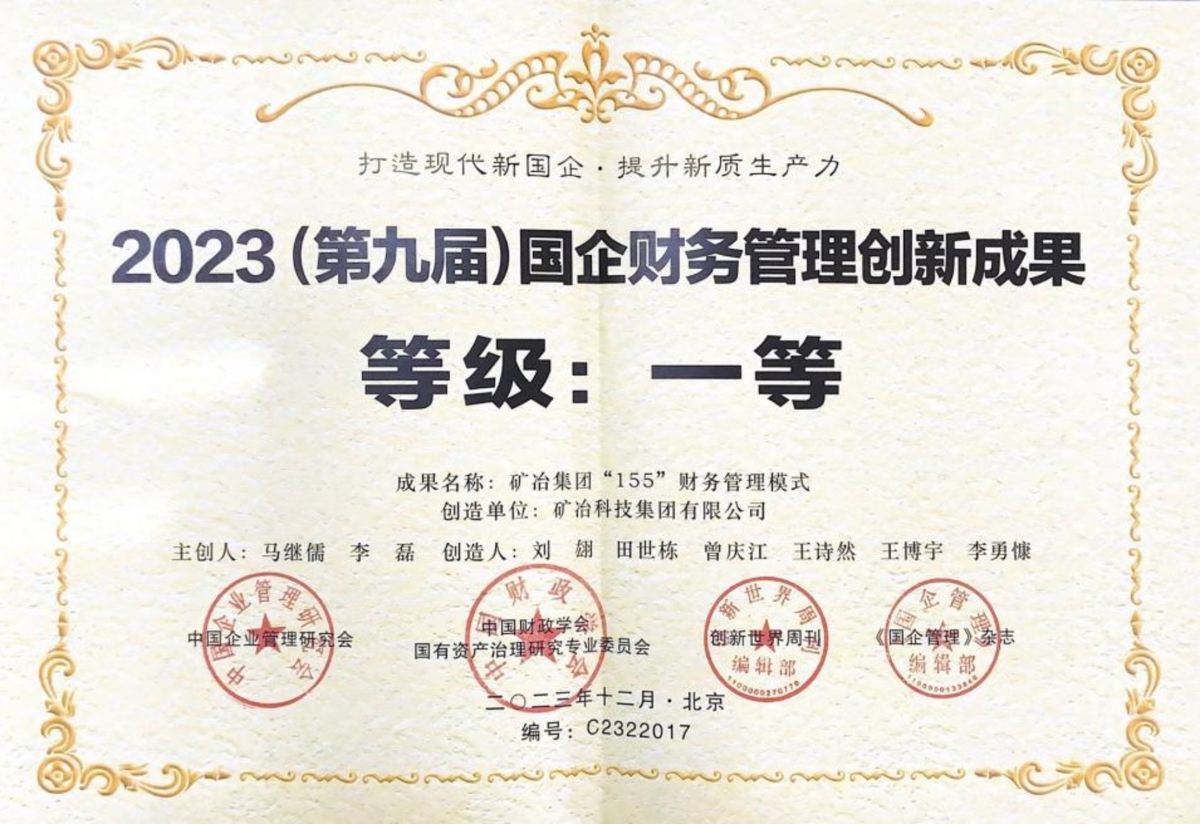 2023年12月23日,2023(第九届)国企管理年会在北京举行,会上发布了2023国企管理创新成果,九游(中国)申报的成果《九游(中国)“155”财务管理模式》荣获一等奖。