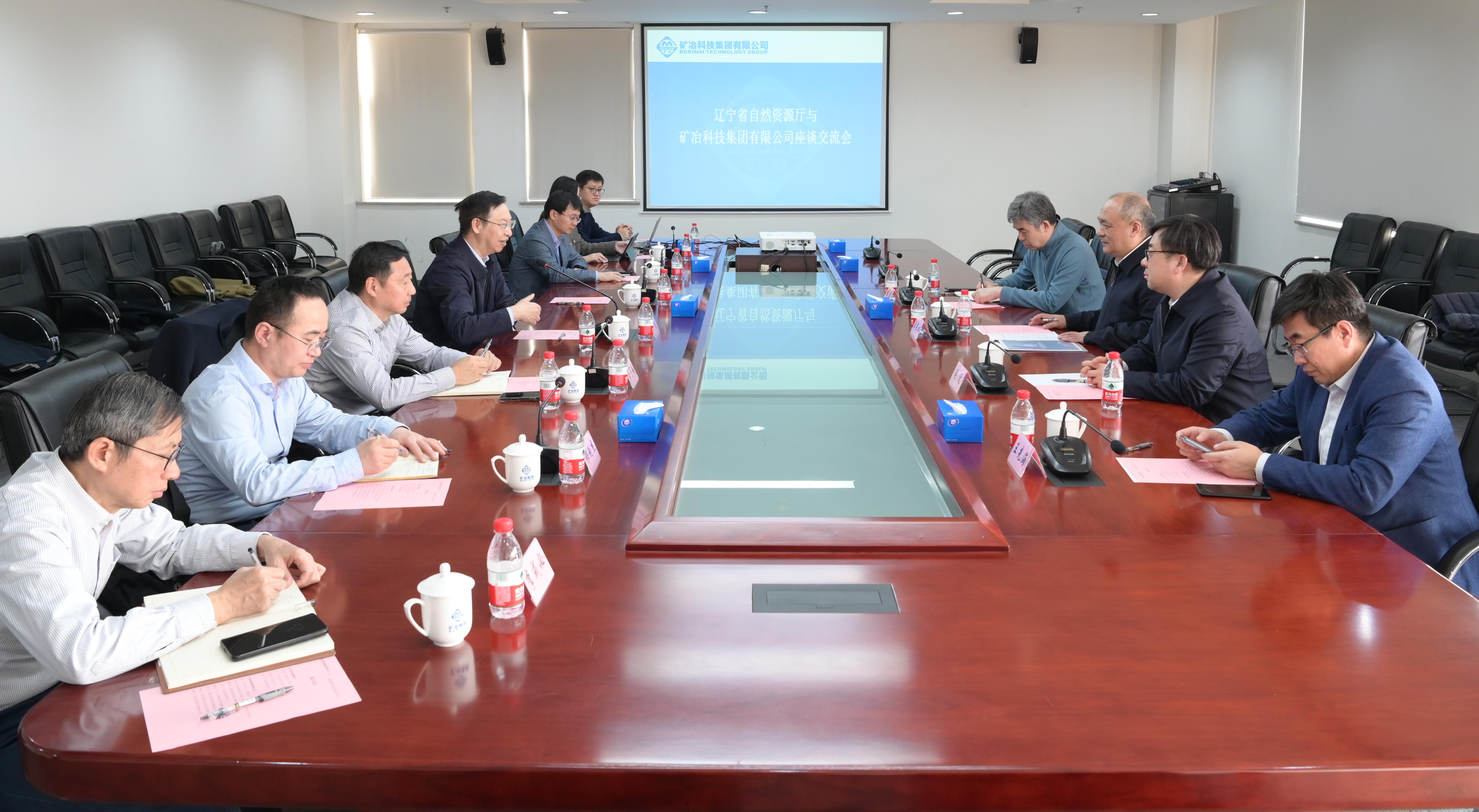 2月28日,矿冶集团党委书记、董事长韩龙在集团研发中心会见辽宁省自然资源厅党组书记、厅长王宗林,双方就进一步深化合作开展座谈交流。