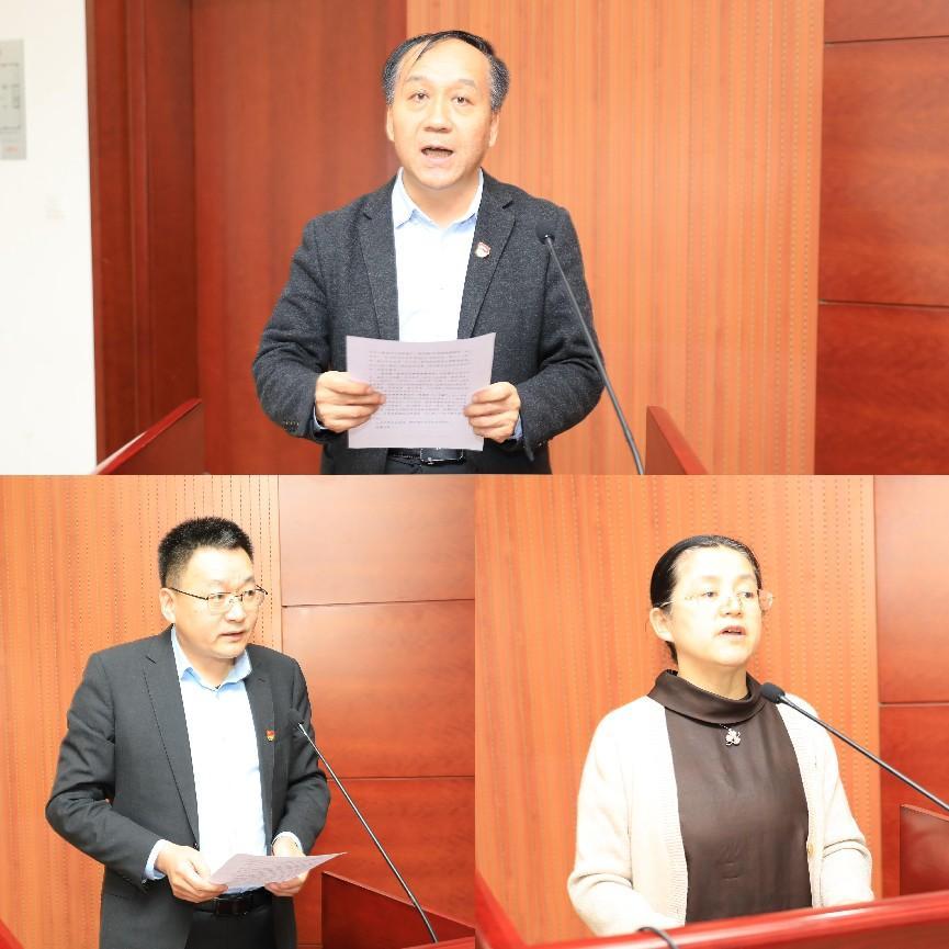 工程公司党总支、北矿化学党支部、财务部党支部书记就履行好全面从严治党主体责任、党组织书记第一责任人责任进行表态发言。